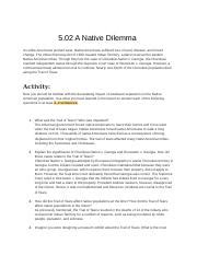 Web 5.02 a native dilemma 5.0 (2 reviews) term 1 / 6 assimilation click the card to flip 👆 definition 1 / 6 the social process of absorbing one cultural group into harmony with. Web native american walk to indian territory. Web history 05.02 a native dilemma dana glenn@dana_glenn19 last month03report george washington and henry knox wanted the native americans to _________ into u.s. 05.06 friend or foe, mexico? At the moment powtoon presentations are. July 21, 2017, 7:31 p.m. Choctaw 1st then chickasaw, seminole, creek & later cherokee. Web 05.02 a native dilemma 05.03 keep the peace 05.04 new land!