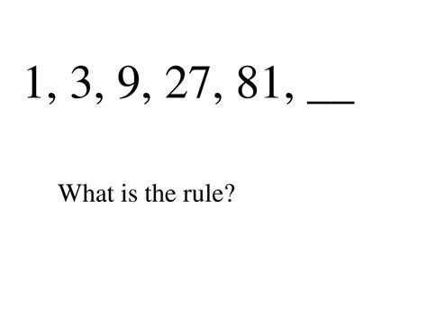 1, 4, 9, 16, 25, 36, 49, 64, 81,. The fourth number is 34, which is 81. Web see a solution process below: Natural language math input extended keyboard examples input interpretation infinite sum sum convergence show. 1, 3, 9, 27, 81. Answer by stanbon (75887) ( show source ): In this case, multiplying the previous term in the sequence by 3 3. 1, 3, and 9.the only prime factor of 9 is: If given the numbers 81 27 9 3 1/3 what would be the next number? 3.the factors of 27 are: