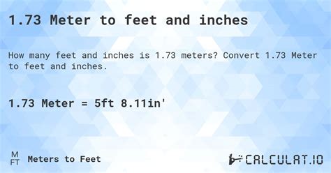 1.73 Meter To Feet. Web 1 meter is equal to 3.280839895 feet: This page provides you how to convert between meters and feet with conversion factor.
