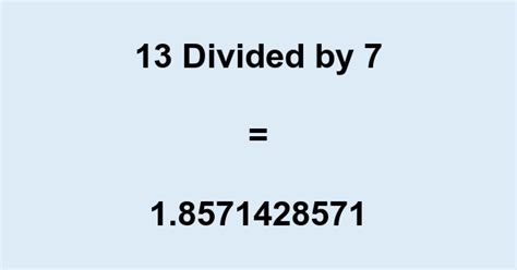 13 Divided By 7. You can always use our calculator with remainders instead and save yourself some time ๐ faq how do you solve chinese remainder theorem problems? Web using a calculator, if you typed in 13 divided by 7, you'd get 1.8571.