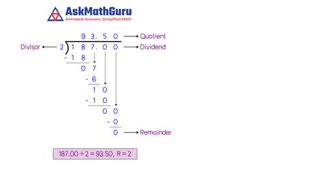 The answer will be detailed below. How to calculate 187 divided by 8 using long division. Divide 2 numbers and find the quotient. You can always use our calculator with remainders instead and save yourself some time ๐ faq how do you solve chinese remainder theorem problems? โ x x 2 6. Web 187 divided by 7 = 26. 0 0 0 0 0 0 x 1 8 7 x 1 8 2 x x 5 0 x x 4 9 x x x 1 0 x x x x 7 x x x x 3 0 x x x x 2 8 x x x x x 2 0 x x x x x 1 4 x x x x x x 6 0 x x x x x x 5 6 Click the blue arrow to submit. โ 187 (numerator) 7 (denominator) = 187 รท 7; Establish the dividend (the number to be divided) and the divisor (is the number โyโ we often refer to in sentences like: