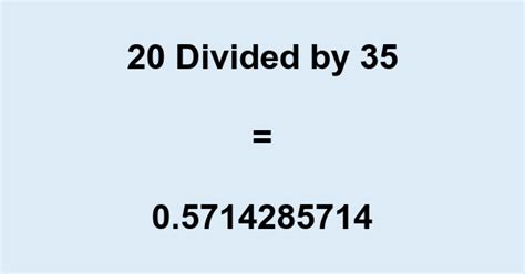 20 Divided By 35. Divide 2 numbers and find the quotient. The math calculator will evaluate your problem down to a final solution.