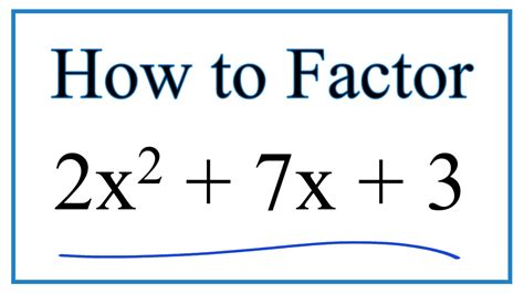 2 x 2 + 7 x + 3 solution factorization the given equation is, 2 x 2 + 7 x + 3 = 2 x 2 + x + 6 x + 3 = x ( 2 x + 1) + 3 ( 2 x + 1) = ( 2 x + 1) ( x + 3) hence, the result of the factorization of the given equation is ( 2 x + 1) ( x + 3). Web how do you factor: Step 1 :equation at the end of step 1 : 2x2 + 7x + 3 ? Divide each term in by and simplify. 3x2 −7x+ 3 = 0. Question 23 factorise (i) x2+9x+18 (ii) 6x2+7x−3 ⇒ x = 7 4 ± 5 4 = 3 or 1 2. Divide each term in by. X = 1/2 = 0.500 x = 3 step by step solution :