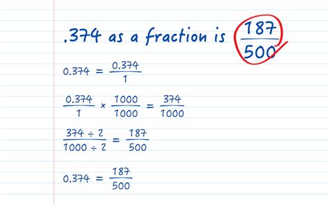 Web (reduced) fractional number equivalent of 1.374 is 687 / 500. Web here's the little secret you can use to instantly transform any fraction to a decimal: To start with, 3.374 can be written as simply 3.374/1 to. Web here are the calculation steps for converting 0.374 into a fraction. Web in just a few short steps we have figured out what 3.374 is as a fraction. Then, divide that value by 1. Write down the number as a fraction of one: The complete answer for your enjoyment is below: Steps to convert decimal into fraction. Web 65 rows step 1: