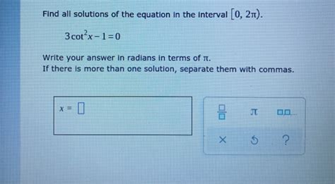 3Cot 2X 1 0. Solve on the interval \(\displaystyle 0\leq x \leq\2\pi\) Web hello this question looked straight forward enough, but i'm stuck and would really appreciate some help.