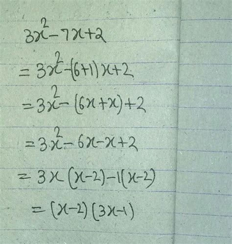 3X 2 7X 2. In this technique, if we have to factorise an expression like ax2 + bx +c, we. Web x ^ 2 +\frac{7}{3}x +\frac{2}{3} = 0 quadratic equations such as this one can be solved by a new direct factoring method that does not require guess work.