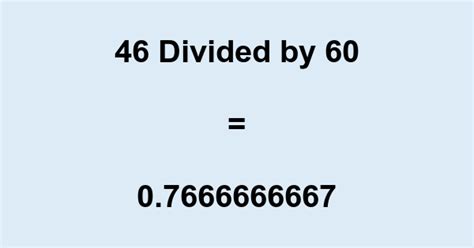 46 Divided By 60. How to calculate 46 divided by 61 using long division Web division is one of the basic arithmetic operations, the others being multiplication (the inverse of division), addition, and subtraction.