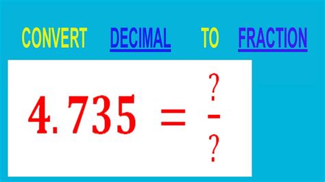 Web the below workout with step by step calculation shows how to convert 0.735 to fraction in simplest form manually. Write down the decimal as a fraction of. To start with, 0.735 can be written as simply 0.735/1 to. Write down the decimal as a fraction of one (decimal/1); First write down the decimal number divided by 1 like this: Web steps to convert decimal into fraction. Multiply both numerator and denominator by 10 for every number after the decimal point 15.735 × 1000 / 1 × 1000. Now we just need to do that multiplication to get our whole fraction: Web to convert the decimal 0.735 to a fraction, just follow these steps: Web to convert 0.735 to fraction, follow these steps: The number you enter can also have decimal.