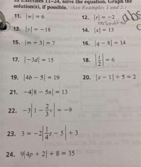 Step 1 :equation at the end of step 1 : Web 24/7 expert live tutors. Web 9 |4p+2| +8=35 absolute value hw question need answer asap please!! Solve the equation, if possible. First, multiply each side of the equation by (x)((x +9)) to eliminate the fractions while. That score includes everything but the final,. It + 5 = 8 2. Web solve the absolute value inequality for p 9|4p+2|+8=35 | mathway free math problem solver answers your algebra, geometry, trigonometry, calculus, and statistics homework. An absolute value equation ∣ a x + b ∣ = c |ax+b|=c ∣ a x + b ∣ = c , where c ≥ 0 c\ge0 c. Step 1 :rearrange this absolute value equation absolute value equalitiy. A friend has a 85% average before the final exam for a course.