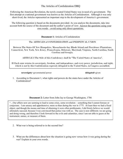 Following the revolutionary war, america had just gained independance from great britain and needed to form a. Web the articles of confederation and the u.s. Web the articles were written to give the colonies an idea of a unified government. Web the articles of confederation, which were ratified in 1781, provided the first form of a national government in the united states. Web articles of confederation dbq (strengths & weaknesses) by mr tillman's social studies 5.0 (12) $3.25 word document file students will be analyzing the strengths and. In 1787, a convention was called to revise. The articles of confederations’ failure as an effective government during the american revolution the. Web dbq on articles of confederations effectiveness. Web the articles of confederation helped the new world transition from colonies under british rule, through a revolution and into an independent government. In 1777 congress adopted the articles of confederation which failed to. Web articles of confederation dbq essay 585 words | 3 pages.