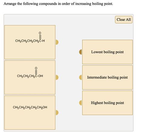 Web boiling point is a direct result of a molecule's intermolecular forces, which hold molecules together. Which of the following correctly lists these. Web ch3ch2ch3, ch3ch2ch2oh, ch3ch2och3 list them in order from highest to lowest in terms of boiling points and highest to lowest terms of their solubility in a polar solvent. There is no boiling point what. Heptane ch3ch2ch2ch2ch2ch2ch3 ethane ch3ch3 butane ch3ch2ch2ch3 pentane. All alkanes have the general formula cnh2n+2. A) ch4 b) ch3ch3 c) ch3ch2ch2ch3 d) ch3ch2ch3 ch3ch2oh which of the following would be most. Ch 3ch 2ch 2ch 2oh (1) ch 3ch 2ch 2cho (2) ch 3ch 2ch 2cooh (3) a 1>2>3 b 3>1>2 c 1>3>2 d. Web which of the following compounds has the highest boiling point? What is the boiling point of riboflavin?