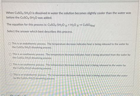 Web when an ionic compound is melted or dissolved in water, the ions are free to move about within the liquid or solution. Copper and sulfate ions and five moles of water. Web cuso4(s) + excess water h 2o(l) → cu2+(aq) + so2− 4 (aq) and this is clearly a chemical reaction, right down to the visible colour change observed. Web equation for cuso4 + h2o | copper (ii) sulfate + water wayne breslyn 625k subscribers 131k views 4 years ago in this video we will describe the equation cuso4 + h2o and cuso4. Web if you are talking of anhydrous cuso4, which is white, turns blue when added to water or water is added to it. It is a salt that is highly soluble in water, meaning that it will. Web copper(ii) sulfate, also known as cupric sulfate or copper sulfate, is a compound with the chemical formula cuso4. Web when an ionic compound is melted or dissolved in water, the ions are free to move about within the liquid or solution. When one mole of `cuso_ (4).5h_ (2)o` is dissolved in water, the heat. Solubility of compounds in solvents: Water is also the solvent, so these don't count.