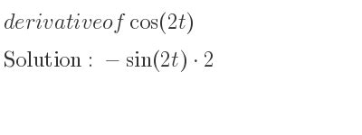Enter the function you want to find the derivative of in the editor. Here f (t) = sint, g(t) = cost. Is integral the same as antiderivative? Web i'm asked to find the derivative of the following. To find the derivative of sin(cos(2t −5)), we use the concept of function of a function and use chain rule to find derivative. Consider the right triangle with sides x and y and hypotenuse r, a is the angle between x and r sina = ry and cosa = rx. Cos(2t) = 0 implies that 2t = π(n+1/2) where n. Web cos2 (t) cos 2 ( t) differentiate using the chain rule, which states that d dt[f (g(t))] d d t [ f ( g ( t))] is f '(g(t))g'(t) f ′ ( g ( t)) g ′ ( t) where f (t) = t2 f ( t) = t 2 and g(t) = cos(t) g ( t) = cos (. Web how do you find the derivative of y = cos2 θ? And so what we want to do in this video is find the derivatives of the other basic trig. The set of all antiderivatives of a function is the indefinite integral.
