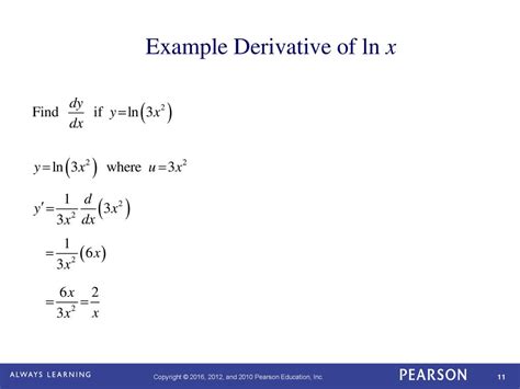 Web answer (1 of 7): Web hopefully it stays that way. J359) y = 30 x 4 17 x + 2 ( sin. For the next set of exercises, find d y d x. F (x) = ln (3x+5) this is a simple example of when to use the ln (u) rule instead: If \(x>0\) and \(y=\ln x\), then \(e^y=x.\) differentiating both sides of this equation results in the equation \(e^y\frac{dy}{dx}=1.\) solving for \(\frac{dy. As f (x) = ln( 1 x2 +9) = ln1 − ln(x2 +9) = 0 − ln(x2 + 9) = − ln(x2 + 9) hence df dx = − 1 x2 + 9 × (2x) = − 2x x2 +9. I don't know what i'd use. The x in the brackets is what the derivative. Then we are asked to find ( f \circ g ) ' (f ∘g)′.