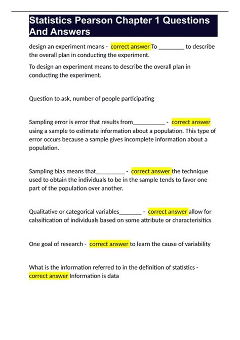 Elementary Statistics Pearson Answers. Online medical info usa today posted this question on its website: Elementary statistics picturing the world pearson.