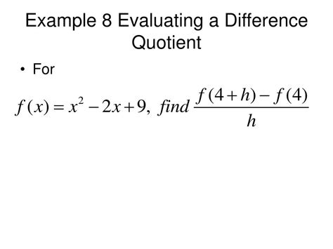 Evaluate A Difference Quotient. F (3.1) = (3.1) 2 − 2×3.1 + 1 = 4.41 Find the expression of f ( a) by substituting x in f ( x) with a.