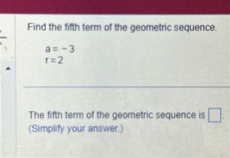 We are given a₀ = 3 and the formula for a_n = 1/. Web find the 5th term 1/2 , 1/3 , 2/9 , 4/27 ,, , , , this is a geometric sequence since there is a common ratio between each term. An = (−1 2)n−1 a n = ( − 1 2) n − 1 sequence: Web n=4 n = 4, the fifth term is n=5 n = 5, and so on. Web this is a geometric sequence since there is a common ratio between each term. Web if it continues as a geometric sequence then the fifth term would be: Web ★★ tamang sagot sa tanong: This answer has been confirmed as correct and. Web what is the fifth term of the sequence generated by the formula below? Web with our geometric sequence calculator, you can calculate the most important values of a finite geometric sequence. These values include the common ratio,.