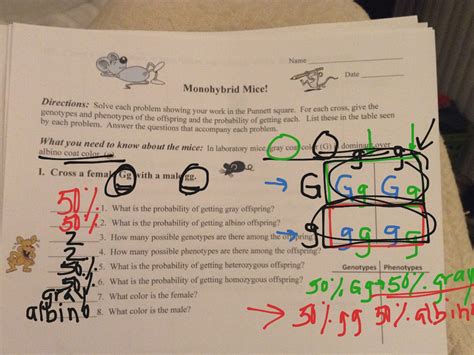 Monohybrid Mice Answer Key. In laboratory mice, gray coat color (g) is dominant over albino coat color (g). Genetics monohybrid crosses worksheet answer key 5.