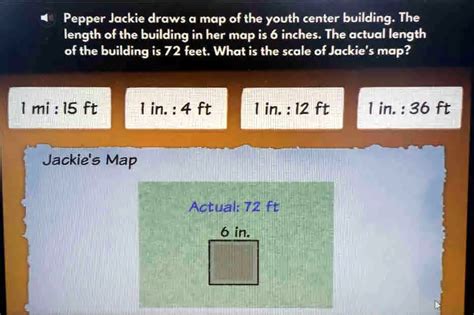 Web pepper jackie draws a map of the youth center building. Answer with explanation:let area covered by. Web published in category mathematics, 27.10.2020 >> pepper jackie decides her map of the youth center is too small. Web pepper jackie is making posters with a map of the area around the youth center. What is the scale of the map? Web pepper jackie draws a map of the youth center building. Web pepper jackie decides her map of the youth center is too small. What is the scale of jackie's map? The length of the building in her map is 6 inches. The actual length of the building is 72 feet.