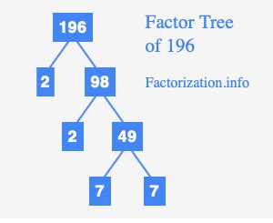 Prime Factor Of 196. Web the factors of 196 are 1, 2, 4, 7, 14, 28, 49, 98, and 196. You'll often see the process of finding prime factors of 196 referred to as prime factorization.
