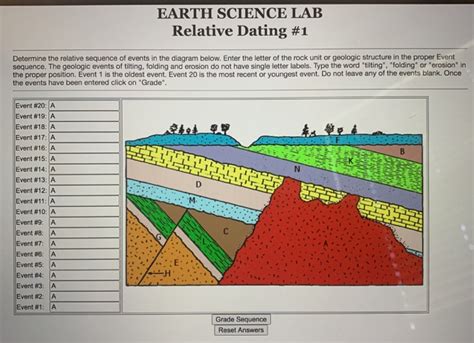 Web relative dating is used to arrange geological events, and the rocks they leave behind, in a sequence. Enter the letter of the rock unit or geologic structure in the. So a rock layer that has layers above and below it is older than the layers above it. Earth science lab relative dating #1 determine the relative sequence of events in the diagram below. Relative age dating simply describes the age of something relative to other things. This assignment is for middle. Faults are younger than the rocks they cut. Youngest _f_ _j_ _b_ _erosion a_ _intrusion r_ _s_ _m_ _k_ _p_ oldest 2. Write the answers beside the blocks. Web students read about fossils, relative dating, the law of superposition, and the three traits of an index fossil. Account for any differences between this value and.