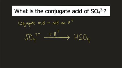 Web the conjugate acid of so 4−2 is: Which of the following is a. You'll get a detailed solution from a subject matter expert that helps you learn core concepts. Web this problem has been solved! Web the hydrogensulfate ion (hso − 4), also called the bisulfate ion, is the conjugate base of sulfuric acid (h 2 so 4). Meanwhile, organic esters of sulfate like. Web they are related by a sodium ion. Web the conjugate acid of so 4−2 is: Web the conjugate acid in the after side of an equation gains a hydrogen ion, so in the before side of the equation the compound that has one less hydrogen ion of the conjugate acid. 1 answer anor277 dec 7, 2015 the bisulfate. Web the conjugate acid of a base is the the compound formed after the bronsted base accepts a proton.