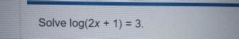 Web how do you solve log(2x − 1) = 3? Get help on the web or with our math app. Web solve log (2x+1)=3 2 see answers advertisement calculusguy x should = 999/2 or 499.5 no problem! Dec 5, 2015 x = 1001 2. Added 3 minutes 19 seconds ago|2/15/2023. Log in for more information. Log 2 ( 2 x + 1 x + 2) = 3. Web algebra solve for x log base 2 of 2x+1=3 log2 (2x + 1) = 3 log 2 ( 2 x + 1) = 3 rewrite log2 (2x+1) = 3 log 2 ( 2 x + 1) = 3 in exponential form using the definition of a logarithm. We have the following equation: Precalculus solving exponential and logarithmic equations logarithmic models 1 answer jothi s.