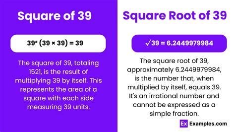 Square Root Of 39. Web in mathematics, the general root, or the nth root of a number a is another number b that when multiplied by itself n times, equals a. 39 = 313 ⇒ 39 = 31131 therefore, √39 = √ ( 31131).
