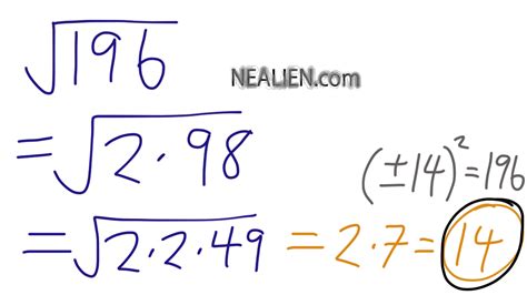 196 is a perfect square number. The square root of 196 is 196 = 14. √ 49 196 49 196. √ 1 196 1 196. Cancel the common factor of 49 49 and 196 196. Web what is root 196 simplified?/ which is equal to √196?is 196 a perfect square and cube?what is the perfect square after 196?how do i find 196?is 196 is a perf. I⋅√142 i ⋅ 14 2 Rewrite √1 4 1 4 as √1 √4 1 4. Web the square root of 196 is a quantity that when multiplied by itself will equal 196. I⋅√196 i ⋅ 196 rewrite 196 196 as 142 14 2.