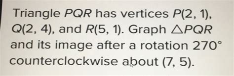 If triangle pqr is rotated 180° about the origin, what is the length of side p'r? Triangle pqr is transformed to triangle p'q'r'. Web we have been given the vertices of triangle pqr as: Triangle p'q'r' has vertices p'(4, 0), q'(3, 1), and r'(−1, −2). Now coming to the solution as already mention in the question. Which graph shows the image, triangle p’q’r? 1 see answer advertisement cros7725 answer: Web triangle pqr has vertices p (0, 0), q (3, 4), and r (3, 0). The triangle is rotated 90 degrees counterclockwise using the origin as the center of rotation. Reflection over the line x=a is accomplished by the transformation. Web 12 a triangle has vertices a(−2,4), b(6,2), and c(1,−1).