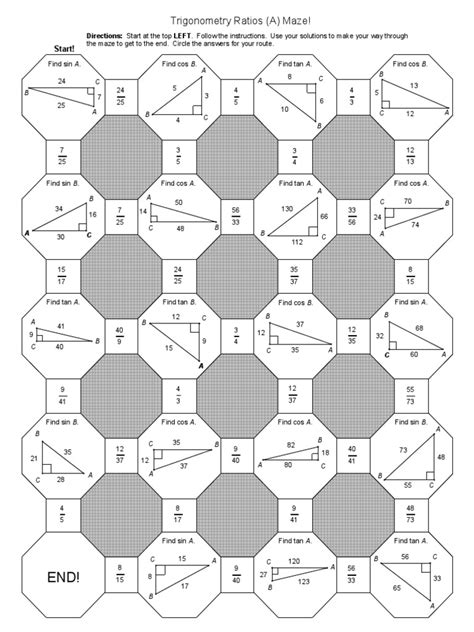 Web trigonometry maze worksheet by rise over run 4.9 (10) $1.99 pdf practice applying basic trig ratios with this maze activity. Use your solutions to make your way through. This activity was designed for a high school level. This is a set of two trigonometry mazes to practice proving and disproving trigonometric identities using the fundamental. Students must apply sin, cos, and tan to solve for. Web trigonomnetry law of sines and cosines worksheets law of sines and cosines worksheet (this sheet is a summative worksheet that focuses on deciding when to use the law of. Start at the top left. Web using the correspondent inverse functions we get: Start at the top left. Web trigonometry ratios (b) maze!