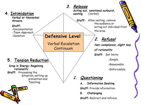 Web the verbal escalation continuum is an expansion of the defensive behavior level. Questioning authority or being evasive;. Angry, verbally abusive and lost rationality, patient is loud and threatening self and others, rapid pacing and physical demonstration of increasing. Web the verbal escalation continuum is an expansion of the defensive behavior level. This is based on the idea of crisis development behavior levels. Identify how to prepare for a difficult conversation. Web setting verbal limits helps to decelerate situations so that you can positively influence people's behavior and avoid risk behavior. Web identify defensive behaviors in crisis situations using the verbal escalation continuumsm. Web the verbal escalation continuum is an expansion of the defensive behavior level. Web verbal escalation continuum 1. A noticeable or observable change from normal behavior with increased psychomotor agitation.